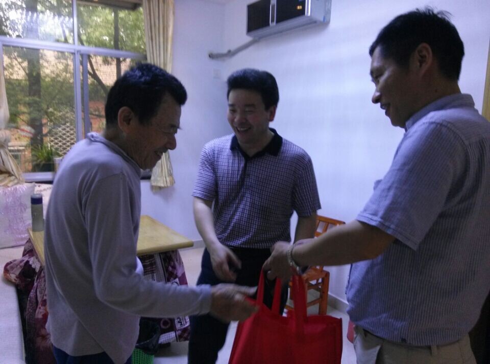 5月29日、30日两天下午,在端午佳节来临之际,学校党委纪委书记曾言同志带领离退处班子成员分别到覃光文、罗丕贵、谭祖林、郭文甫、钟嵘之、林柯茂等15位孤寡、长期重病卧床行动不便以及生活特别困难的高龄老同志家中,代表学校党委看望慰问,并给每位老人送去了慰问金和两双棉质拖鞋。